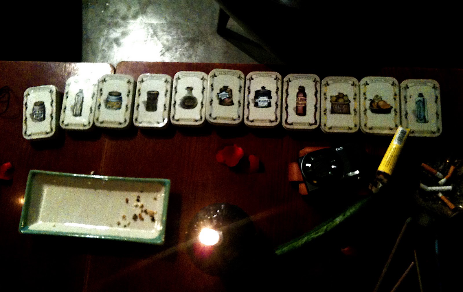 The Hendrick’s seminar was held in a kind of secret place , in a hard to find place between Ebisu & Nakameguro . It took us a while to find it until we saw a rose leafs trail in front of a old Japanes building . Following the rose leafs trail upstairs , little by little we could feel the smell getting stronger and stronger . A 1920’s kind of music was flowing in the air . By this time we could feel that we would face to something unusual .