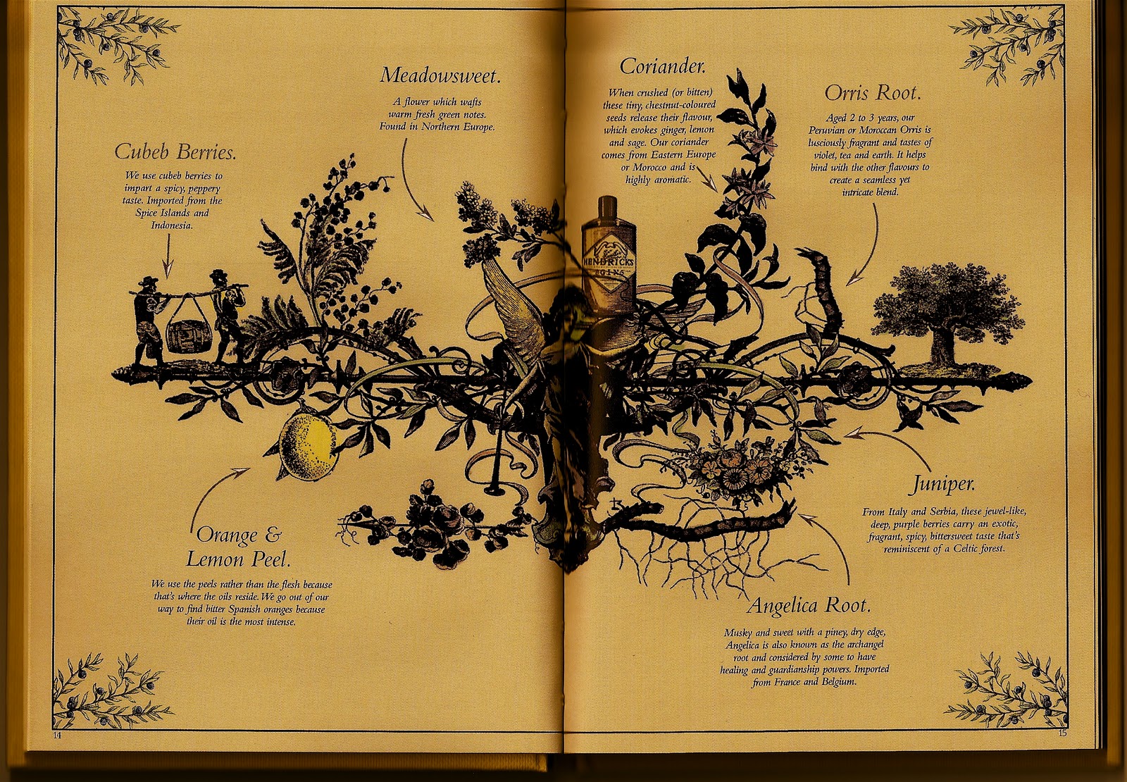 And than came the part of what is inside Hendrick’s gin . Hendrick’s gin is made of 11 differents herbs : Cubeb Berries ( From Indonesia and spice Islands ) , Meadowsweet ( from Northern Europe ) , Coriander ( from Eastern Europe and Morocco ) , Orris Root ( aged 2 to 3 years , from Peru and Morocco ) , Juniper ( from Italy and Servia ) , Angelica Root ( from France and Belgium ) , Orange & Lemon Peel ( from Spain ) , Chamomile , Elderflower and Caraway Seeds . All those ingredients are distilled in 2 types stills system using a Bennet Still and Carter-Head Still ( 19th century still ) . That’s also one of the reasons that makes the gin flavor special . But the main difference is after the gin distillation , when cucumber and rose leafs are added . That gives the unusual Hendrick’s gin taste .