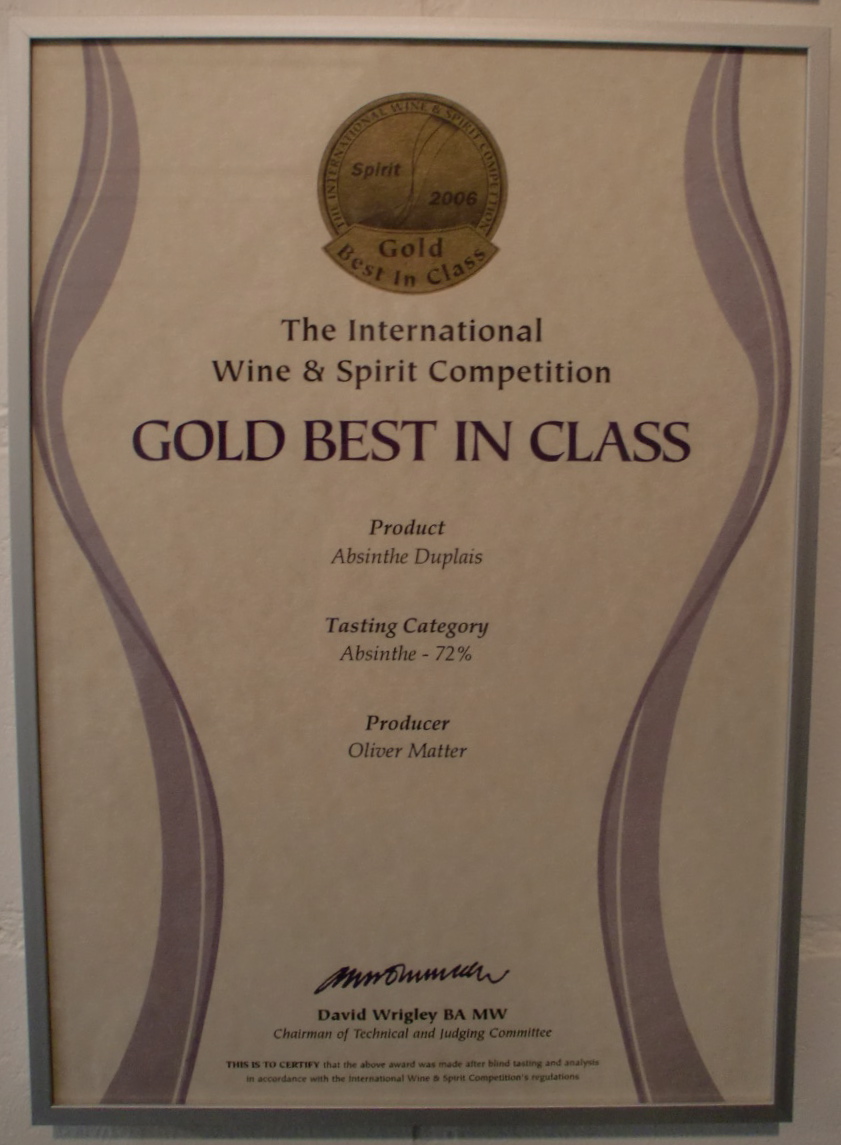 Mr Oliver Matter has been making different types of absinthe , and some of them had gotten medal prizes .
