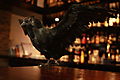 We have visitors from all over the world but for our surprise some crows and owls just invade the bar TRENCH. At first they scary us with that staring look all the time but little by little we became good friends.Now they are the bar trench pets.There are even some people that just come to talk with them ! Most of the time they stay between the books and                               Bottles . I hope they like it .
