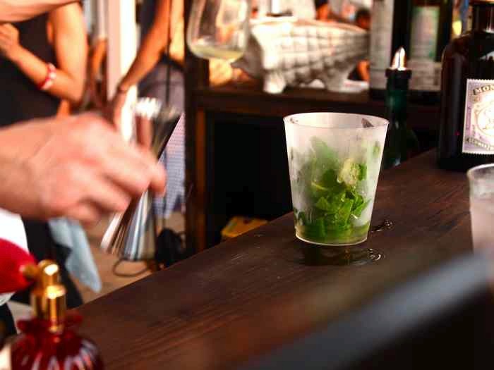 人気のアブサンでつくるモヒート。大きな葉のフレッシュミントをたくさん使用します。