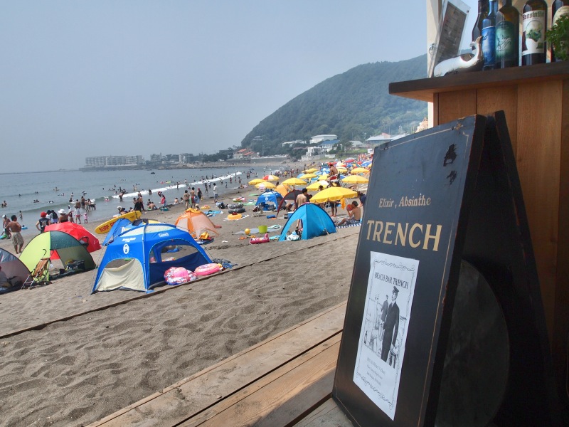 お盆休みの週末に、葉山の一色海岸のCafe de Ropé la mer にて