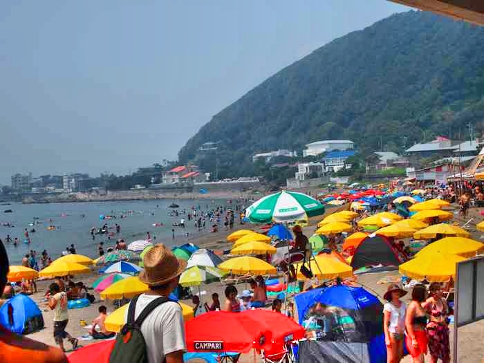 午前中から多くの人がパラソルやテントをはり、海を満喫しています。