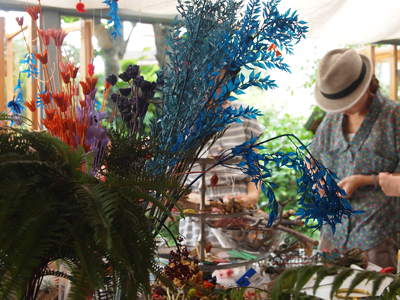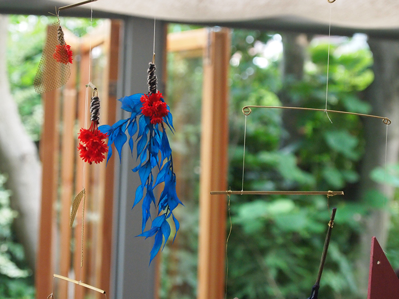 ドライフラワーやプリザーブドフラワー、流木などをつかってモビールを制作するワークショップも開催されていました。鮮やかな色彩が感覚を刺激します。