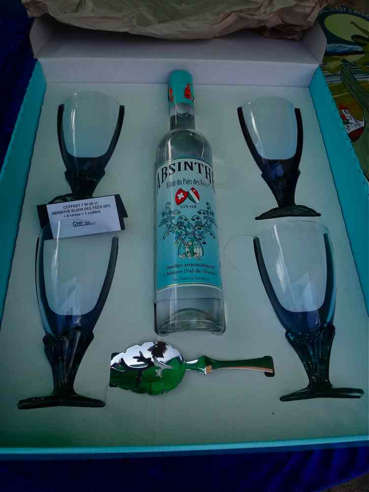 「アブサンー妖精たちの国の薬草酒」 という意味で、これがそのまま商品名になっているようですね。これを製造しているのは