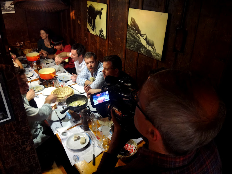 and then , a dinner with over 40 absintheurs from Germany , Belgium , England , Italy , Czech Repuplic , France , USA , Netherlands and Japan at the top of Creux du Van . It was a nice gathering with a nice view , cows everywhere ,Swiss Fondue , a lot of absinthes and even 2 vintage Pernod fils Tarragona absinthe bottle from 1940’s and 1960’s . There were no reason to complaim .